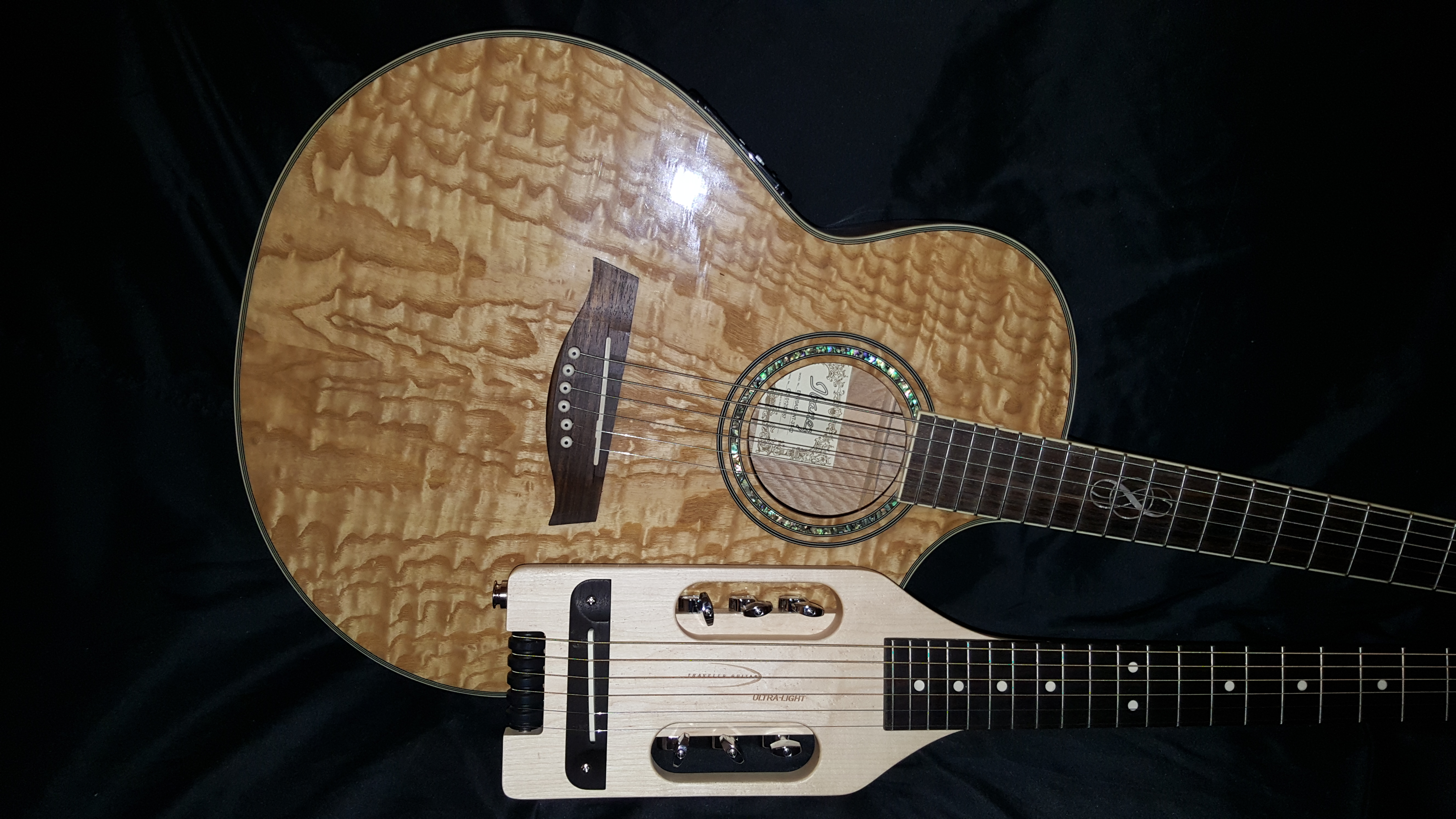 Well I’m on the road again. Traveling to another city doing what I do to pay the bills but this time there is a difference. This time I packed a guitar and not just any guitar a Traveler Ultra light guitar one that fits in the overhead compartment of the plane and allows me to record, practice and play sitting in my hotel room.